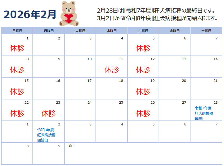 3月以降の休診日は適宜更新いたしますので、お知らせ一覧からご確認ください。